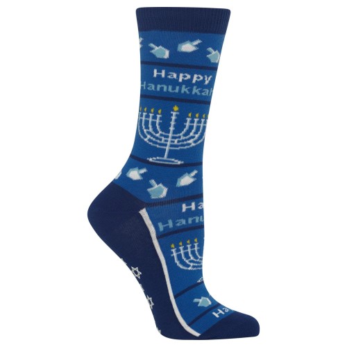 Finely woven with a festive Hanukkah pattern and a non-skid bottom, these women’s crew socks inspire a festive spirit. Wear them to work or for all eight nights of Hanukkah