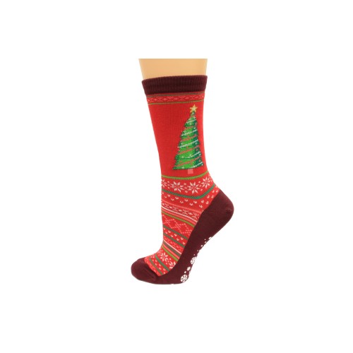 Hot Socks Christmas Tree Non Skid Women's Socks 1 Pair, Red, Women's Shoe Size 9-11