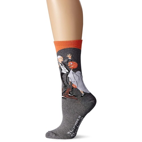 Hot Sox Women's Norman Rockwell Collection Crew Socks, Halloween (Coral), Shoe Size: 4-10