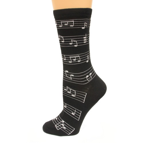 K. Bell Making Music Crew Socks, Black, Sock Size 9-11/Shoe Size 4-10, 1 Pair