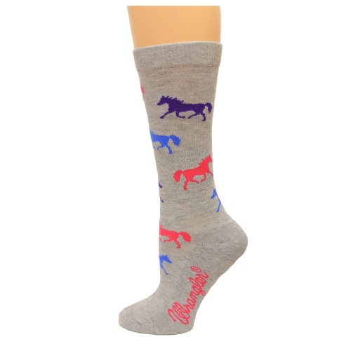 Wrangler Ladies Horses Crew Sock 1 Pair, Grey, W 7.5-9.5